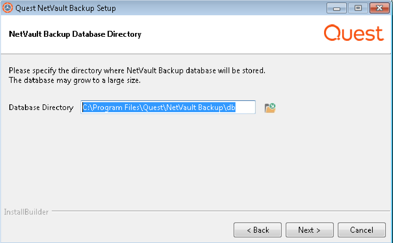 In der Datenbankverzeichnis Geben Sie den Installationspfad für die NetVault-Datenbank ein.