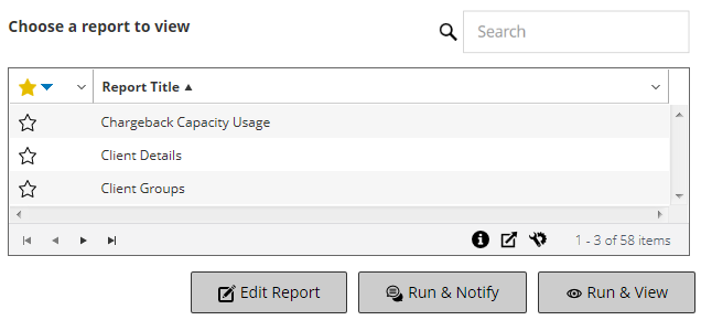 On the View Reports page, click the empty star next to the report in the first column that you want to favorite.