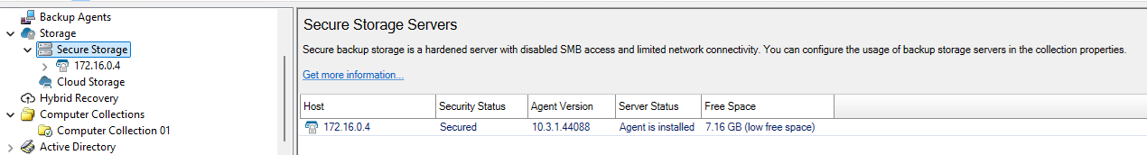 Secure Storage is enabled and configured for each Computer Collection separately. When a backup is run for a Computer Collection with Secure Storage enabled, a copy of the backup is saved to the Secure Storage server.