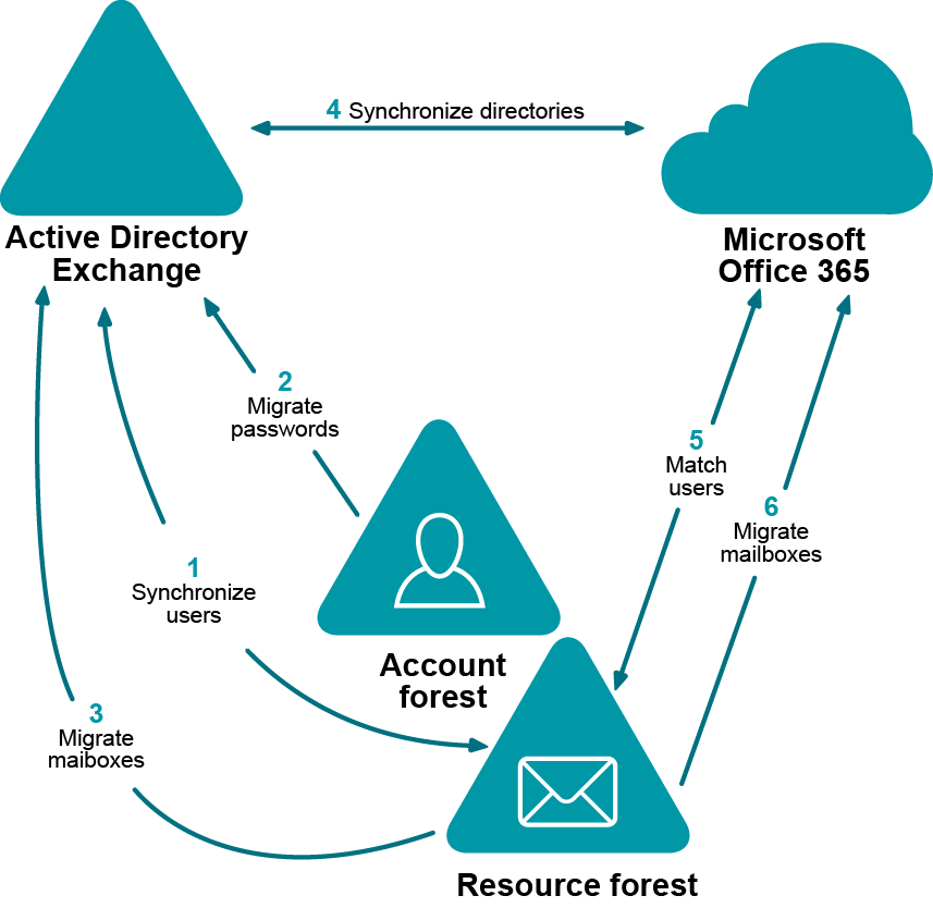 Migrate users from the source resource domain to the target Active Directory domain (the one that is synchronized with Microsoft Office 365).