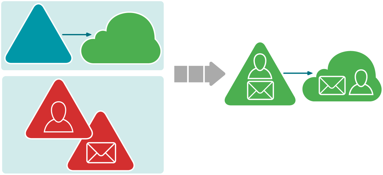 The typical use case for this scenario is when a company optimizes its directory and mail operations, and one or more forests are merged into a single clean hybrid.