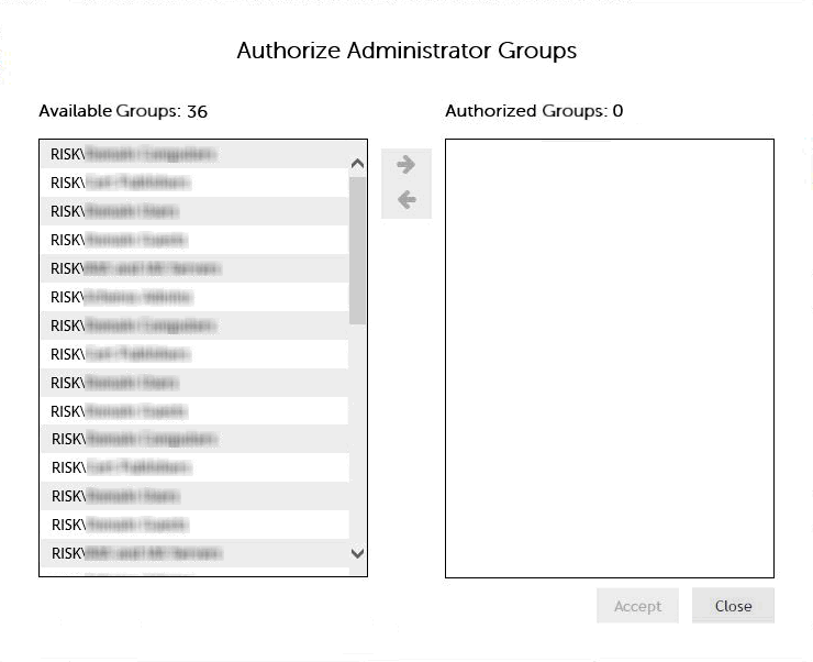 Once all changes have been made, click Accept to save and return to the Authorized Groups page.
