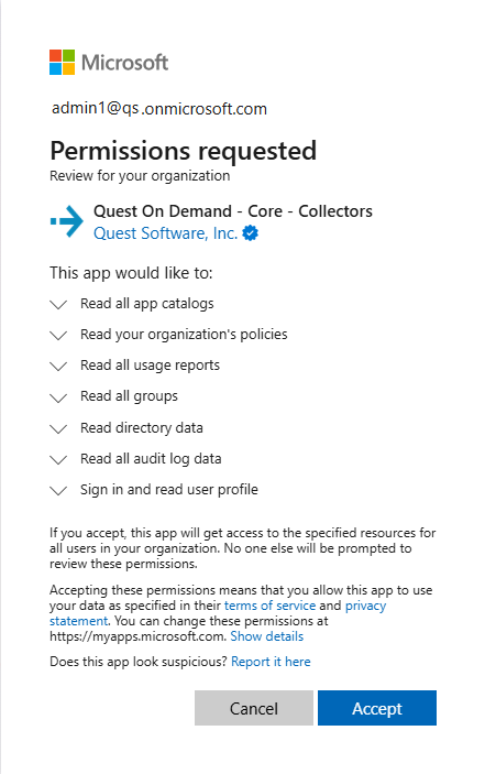 NOTE: Fore more information, see the Quest On Demand Global Settings Security Guide.