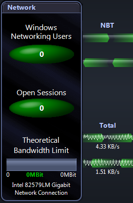 The Network panel shows the logins, connections and movement of data on the Unix system: