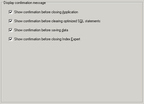 Specify whether to show a confirmation message when closing the Index Expert window.