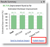 On the Results page, in the Results Summary pane, click Publish Report. SQL Optimizer generates the report and opens it in the Report window.