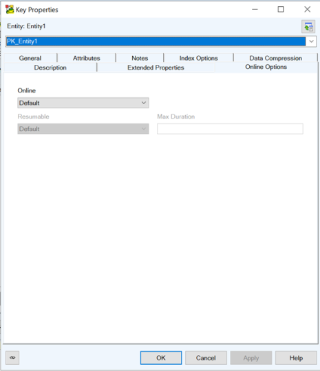 New properties Online and Resumable are available in Keys Properties | Online Options. The default