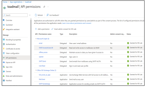 4. At this point, Microsoft Documentation states that the application registered has to interface and use the SMTP server.