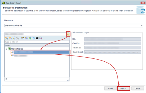 • From the File Sources drop-down list, select SharePoint Online file
