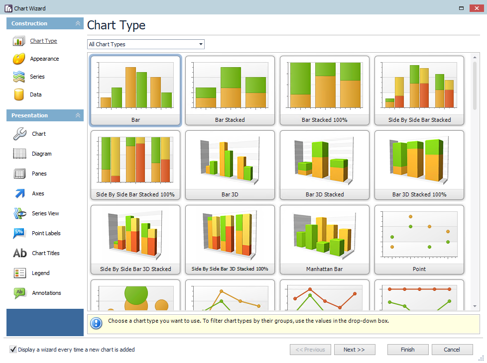• Chart Designer: Enables users to create visual representations of their data through a variety of customizable chart types.