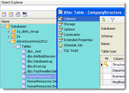 This applies color-coding to the Object Explorer window and the navigation pane in Object Editor (Create, Alter, Drop, etc.) windows.
