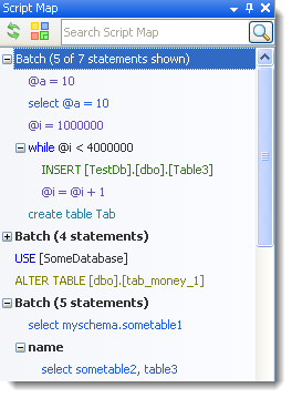 • Double-click a statement (or press Enter) in the Script Map pane to navigate to the start of that statement in the Editor.