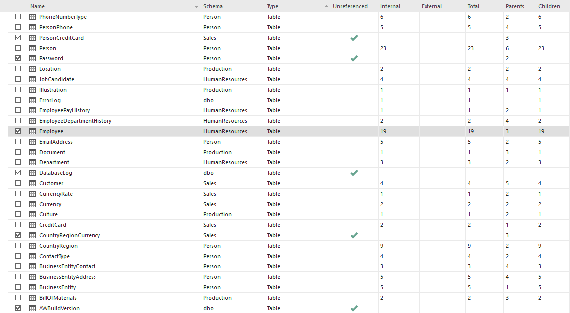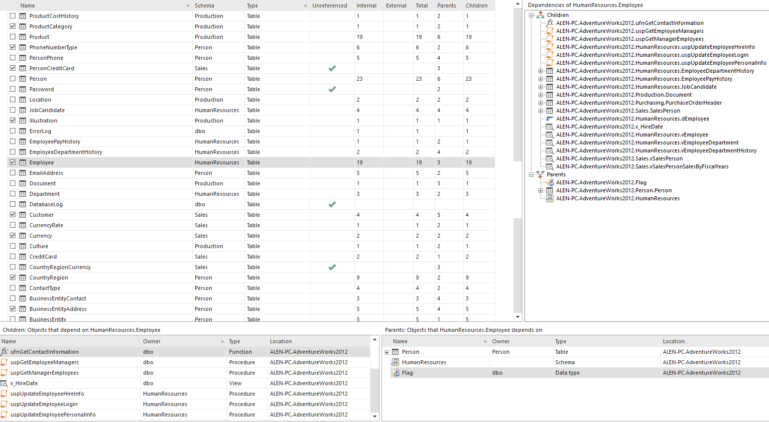 SQL database refactoring - Finding external references by analyzing object dependencies (4210804)