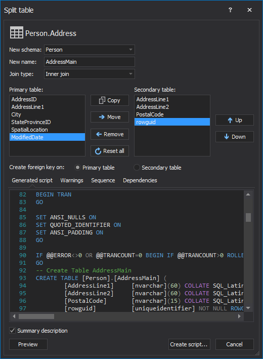 Bottom line, gaining database performance by splitting large tables doesn't have to be potentially hazardous to the database functionality or even time-consuming as ApexSQL Refactor can split the tables, without risking to break any dependencies, in a single click.