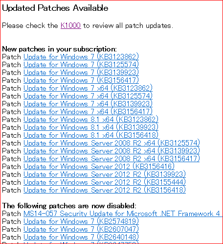 The following patches are now disabled には サブスクライブから外れて無効になったパッチが含まれます。