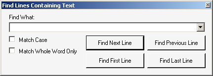 Find... (or Ctrl+F): Opens a Find dialog box that lets you specify a text string to search for within the open file: