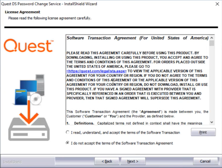 On the source environment, click the QuestPasswordPropagationService icon. The install wizard appears.