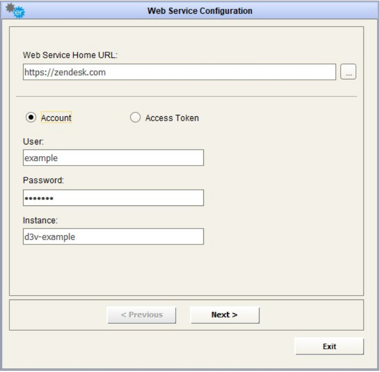 To use the adapter for Zendesk to get tickets, select the authorization method (Account / Access Token) and enter the relevant credentials.
