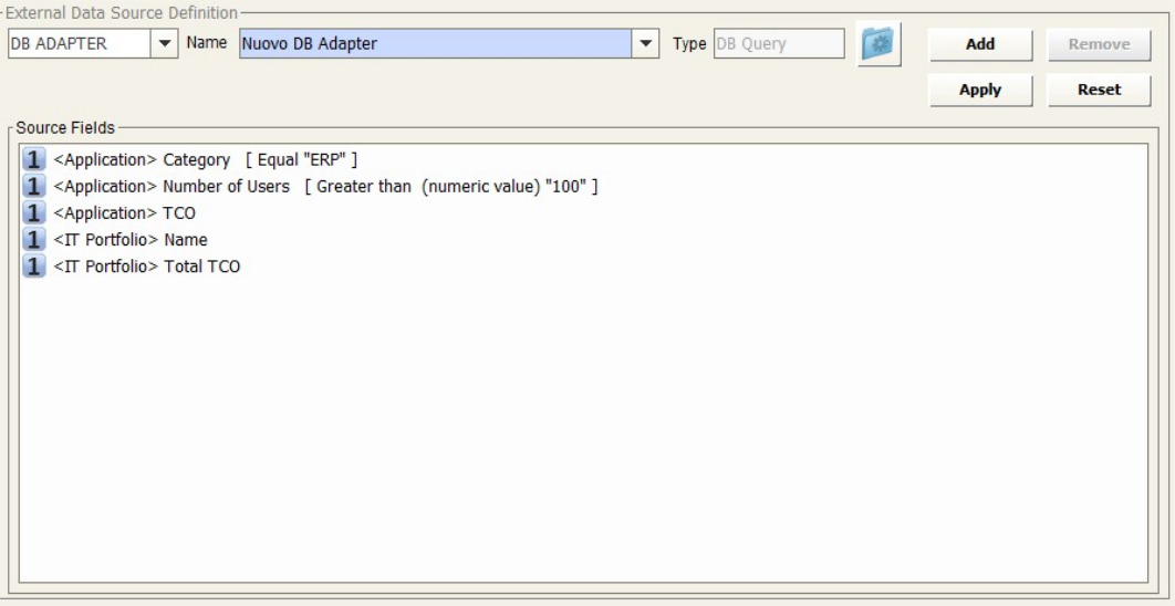 Select the name of the DB Adapter from the drop-down list, Name (only DB Query and Stored Procedure Adapters will appear in the list)