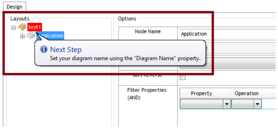 To add a Design Layout, you need to right click on an object node without any Design Layout. On the context menu you will have the option “Add Diagram Layout”, and then choose the diagram Layout you want to use depending on your requirements.