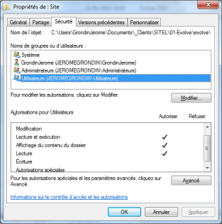 - Grant the ‘Users’ group the following permissions on the C:\Casewise\evolve\Site folder