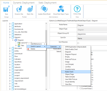 2.Right-click beneath the Parent Node Layout to change the Layout to Radar:
