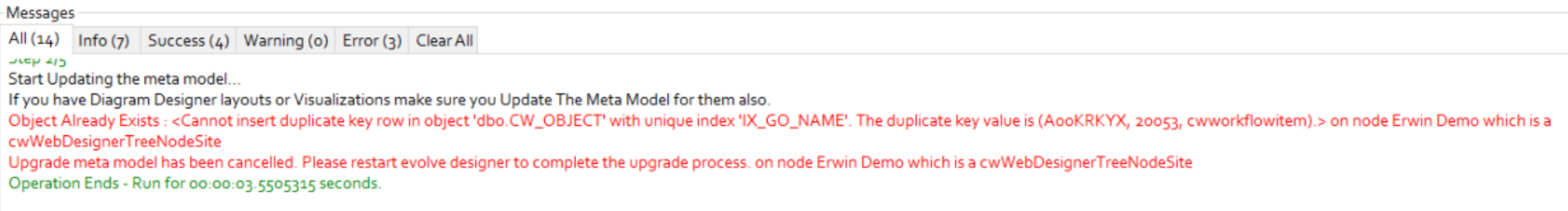 You will receive the below error message when you click on 'Update Meta Model & Themes'. To fix this error, you need to first update meta model.