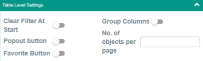 The Complex Table feature provides an option to display a complex table and object's properties (Title, size of the table, size of the column), and disable all the filters at once.