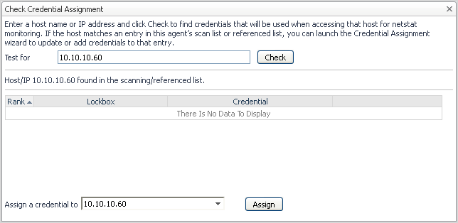 The Check Credential Assignment dialog box displays.