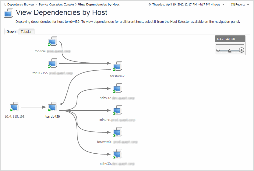 Use the View Dependencies by Host dashboard to look at the relationship between a selected host and other components in your environment. It contains the following tabs: