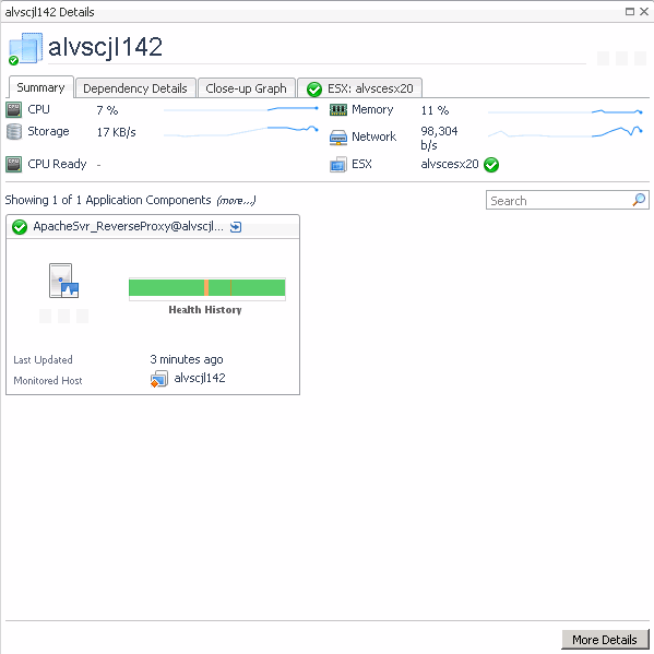 From this tab you can navigate to the Host Monitor dashboard by clicking More Details. Use the Host Monitor dashboard to further investigate the performance of the host.