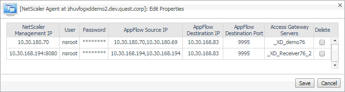 Delete: Select this option if you no longer want to monitor this NetScaler Gateway Server.