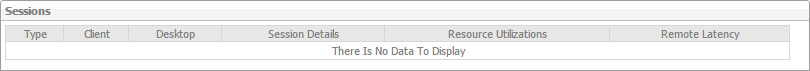 General information about the sessions initiated by the selected user, such as the session type, client name, desktop name, additional session details, resource utilization, and latency.