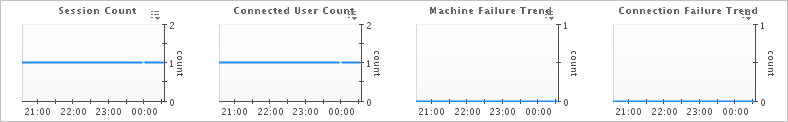 Displays user logon counts over the selected time period. It also lists the numbers of desktops that are available, disconnected, and in use, and the projected trends.
