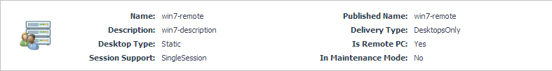 General information about the session, such as its name, state, catalog name, type (desktop or application), support type, and the delivery group to which it belongs.