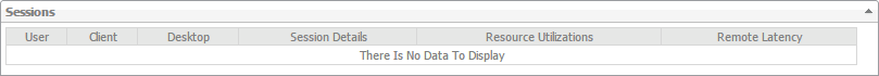 General information about the current application sessions, such as the name of the user associated with it, client name, desktop name, additional session details, resource utilization, and latency.