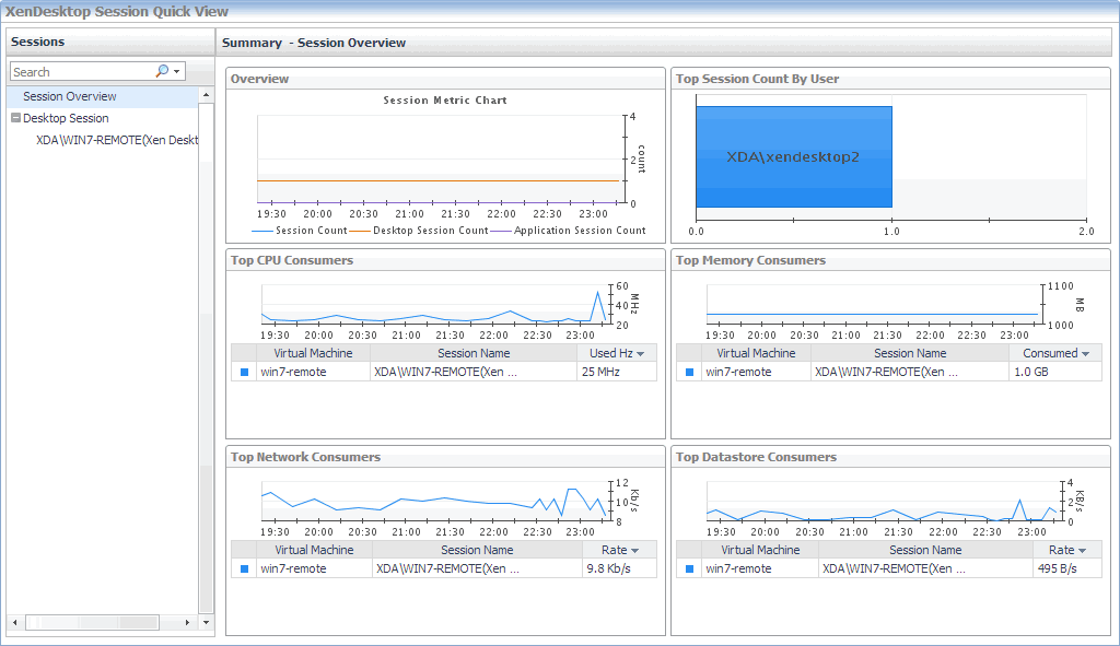 In the XenDesktop Session Quick View, in the Sessions view on the left, click Session Overview. |