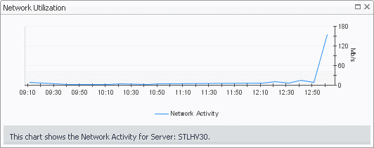 Network Utilization, Transfer Rate. The rate at which the selected server transfers data from and to the network during the selected time period.