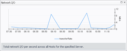 Network I/O. The current rate at which the selected component (cluster, server, or virtual machine) transfers data from and to the network. | |