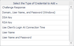 In the Select the Type of Credential to Add list, click the credential appropriate for your authentication type. |
