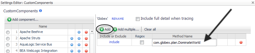 For example, you could add the component Globex, and then specify methods to include or exclude.