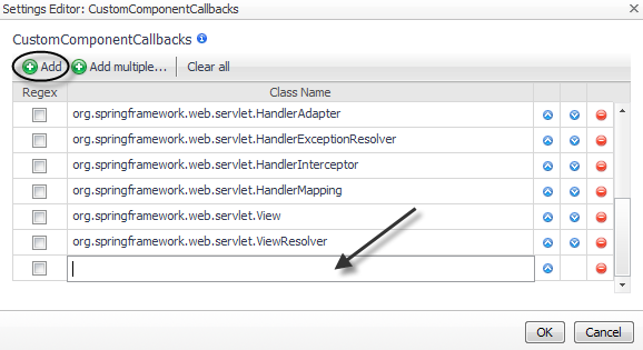 Use the Custom Component Callbacks setting to specify the classes or interfaces that the custom components use to call customer written code. The default instrumentation settings include some custom component callbacks for Apache Struts and Spring.