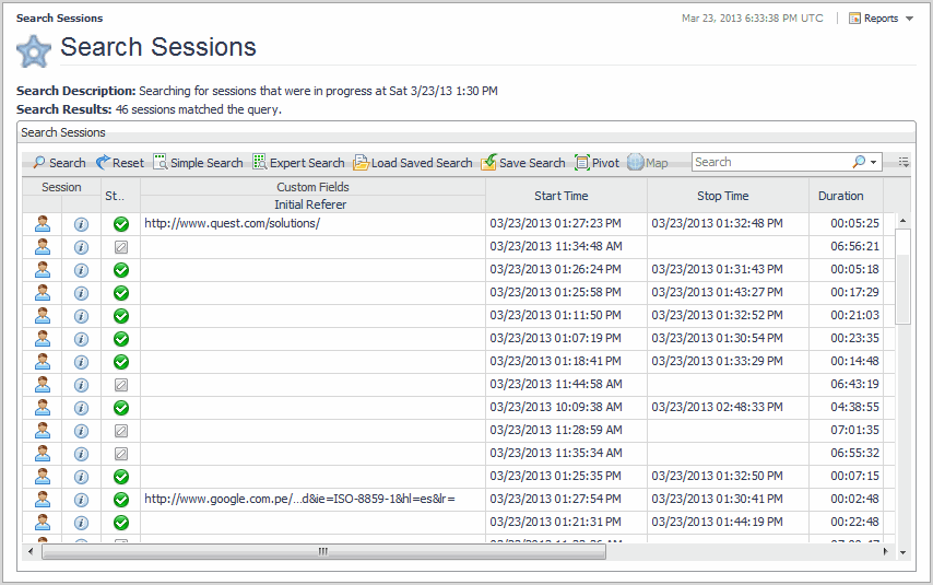 Searching and investigating sessions