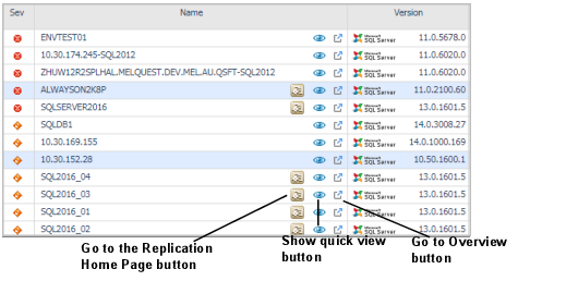 Upon the configuration as a distributor for monitored instances. Instances detected as distributors appear with the button Go to the Replication Home Page () next to the Show quick view button on the Name column of the Databases table.