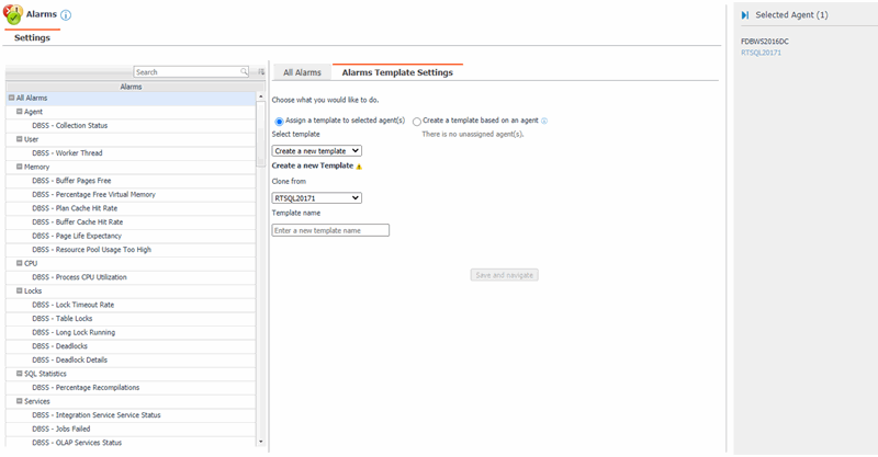 You can override the alarm rules for the selected agents by assigning an alarm template. You can use the template to enable or disable alarms for all rules or an individual rule, or to change the threshold values of an alarm rule.