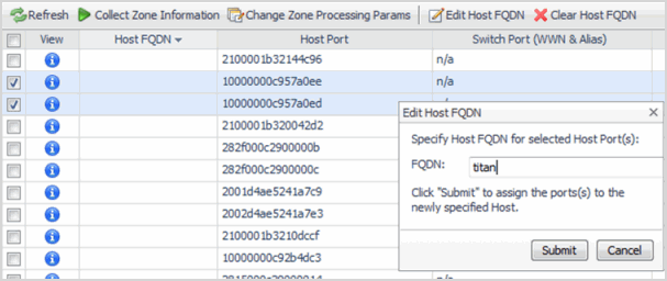 Refresh—Runs the host-resolution analysis to identify inferred hosts for ports handling storage I/O.