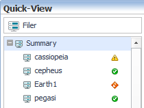 When monitoring filers, or when diagnosing alarms on filers, you may need more detail on a filer and its controllers, ports, NASVolumes, LUNs, aggregates, or disks. You may also want to determine if any child components display alarms. This walkthrough introduces the quick views for filers.
