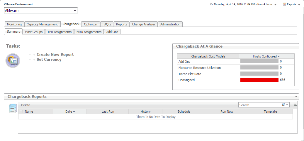 In an IT environment with a high number of physical and virtual machines, it is often important to determine the true cost of virtual machines in order to adequately plan resources for system utilization. The Chargeback tab available on the VMware Environment dashboard provides standard models, allowing you to get insight into host machine usage within a data center.