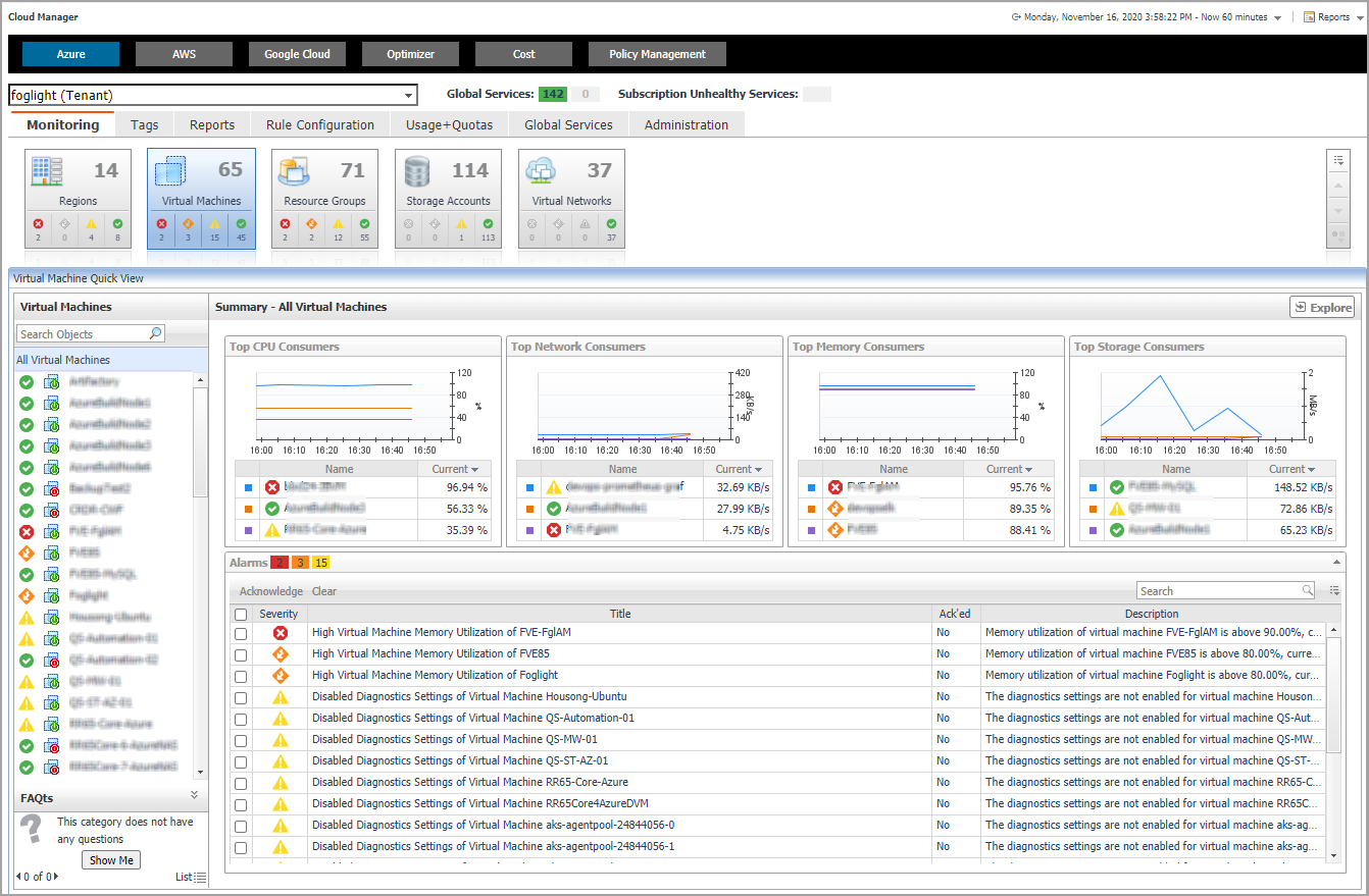 After installing Foglight Hybrid Cloud Manager for Azure, the Cloud Manager entry appears under Homes.