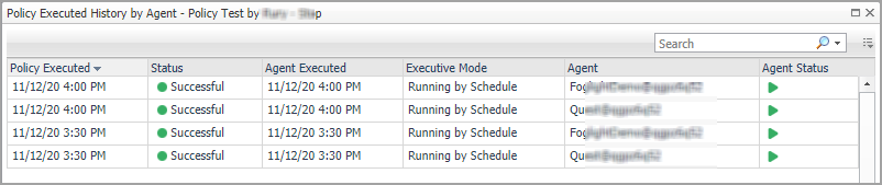 Last Status: Shows the last status after the policy was executed. Click the status and a Policy Executed History by Agent dialog box will appear.